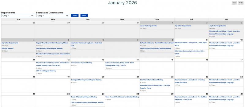 - 1/13/26 at 5:00 pm: Town Council Meeting