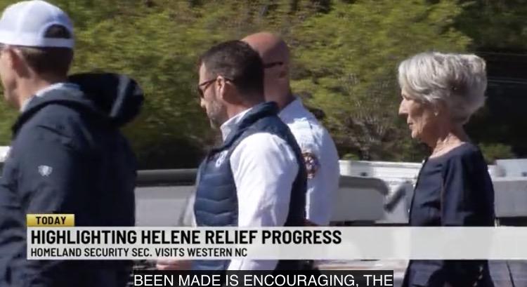 LAKE LURE, N.C. (WSPA) — The United States Secretary of Homeland Security was in western North Carolina Tuesday, highlighting DHS and FEMA relief efforts following Hurricane Helene.